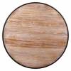 Combinación perfecta de madera natural en la superficie y una robusta estructura de metal negro.