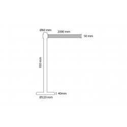 Tamaño de la base 320 mm, tubo de 60 mm, altura total 930 mm