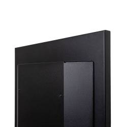 La carcasa negra, con su acabado resistente a huellas dactilares, mantiene su aspecto impecable, como un lienzo siempre listo para mostrar su mensaje. Y qué mensaje más versátil: desde anuncios publicitarios que seducen con sus ofertas, hasta mapas interactivos que guían a los visitantes, el tótem se adapta a cada necesidad.