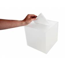 Urna translúcida con Cerradura fabricada en material acrílico.