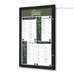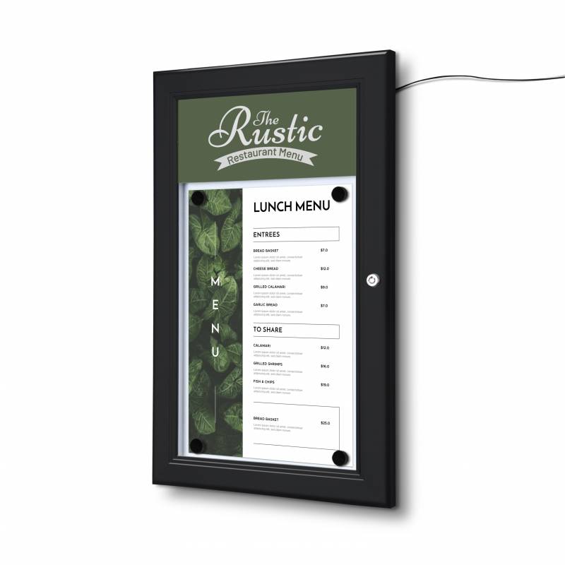 La tira de luz LED integrada ilumina su contenido y llama la atención hacia su mensaje. Tenga en cuenta que solo se ilumina el contenido debajo del logotipo, no la pancarta superior.